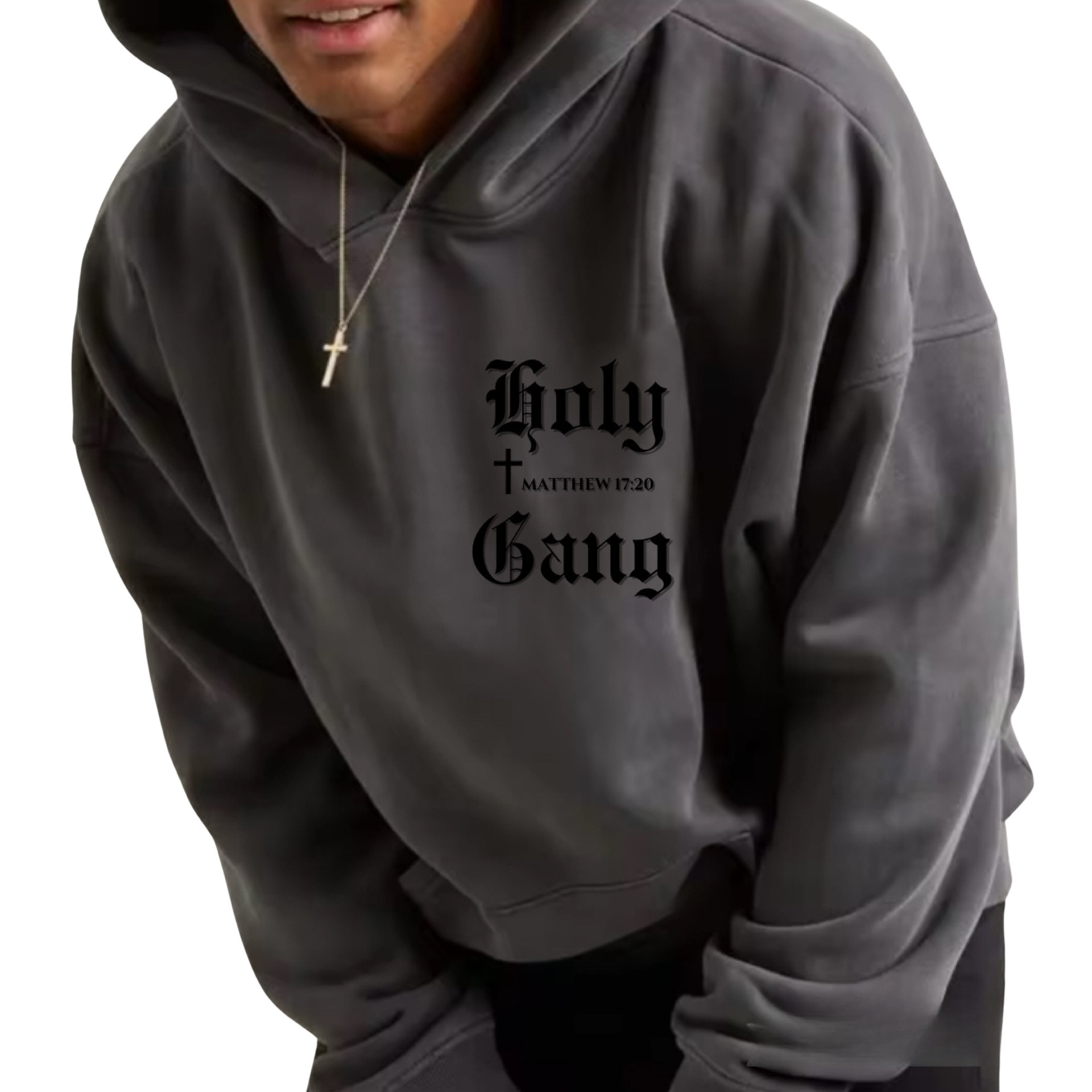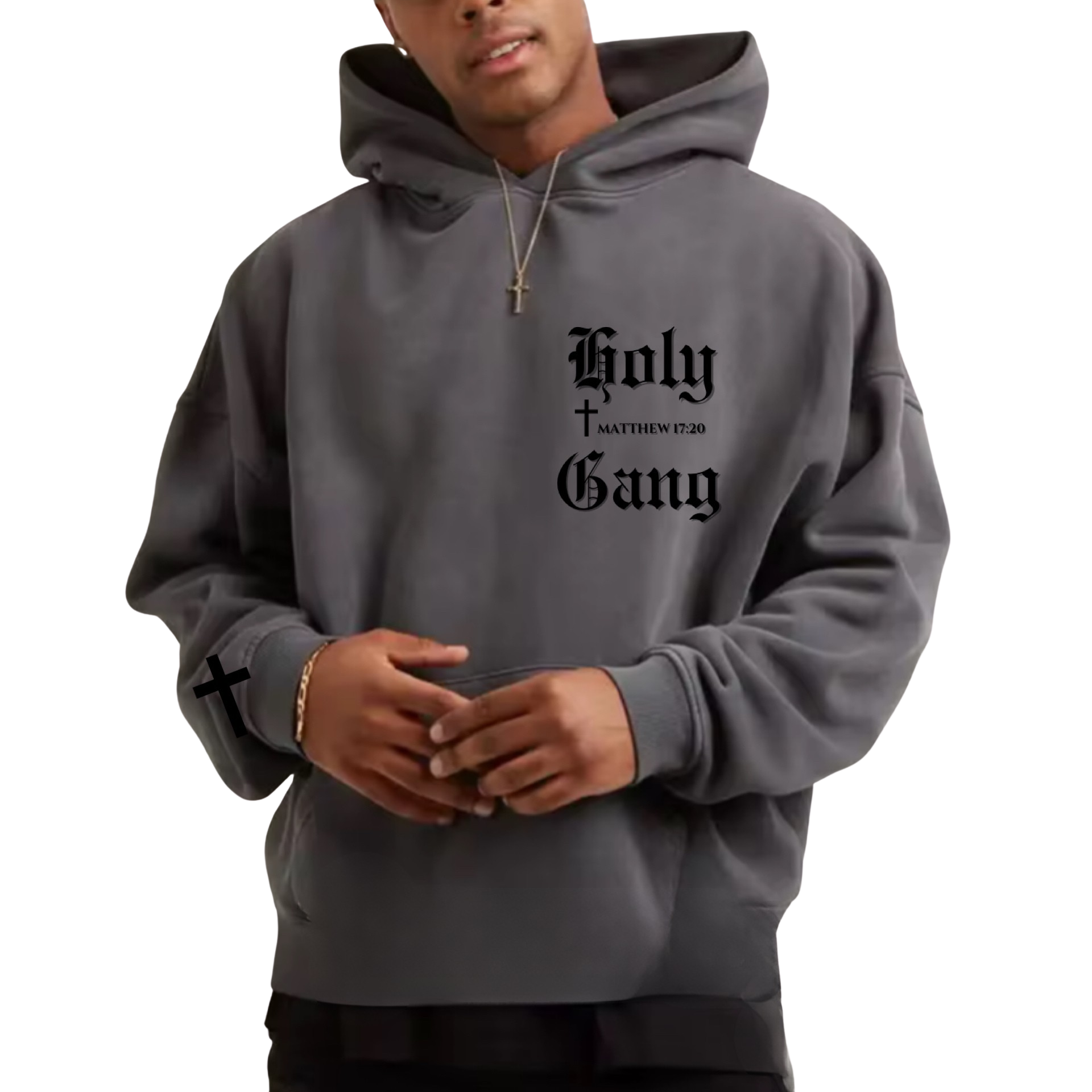 COMING SOON!!! Holy Gang Oversized Hoodie- Matthew 17:20 Edition for Men in Dark Gray